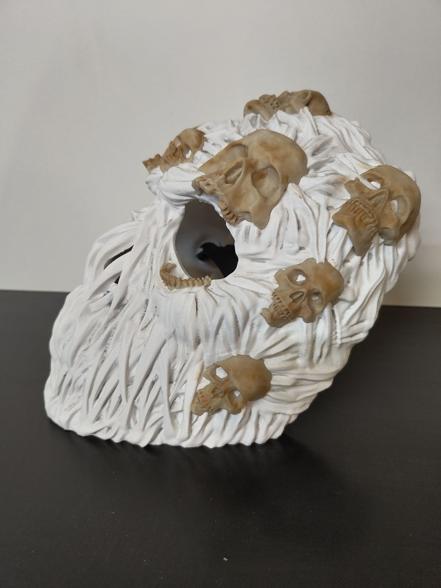 Knochige Strukturen, tiefe Gesichtszüge und ein furchteinflößender Ausdruck verleihen der Maske eine bedrohliche Präsenz. Ob für Halloween, Horror-Events, Maskenbälle, Gothic-Partys, Cosplay oder Fotoshootings – diese Maske verwandelt jeden Auftritt in ein unvergessliches Erlebnis.