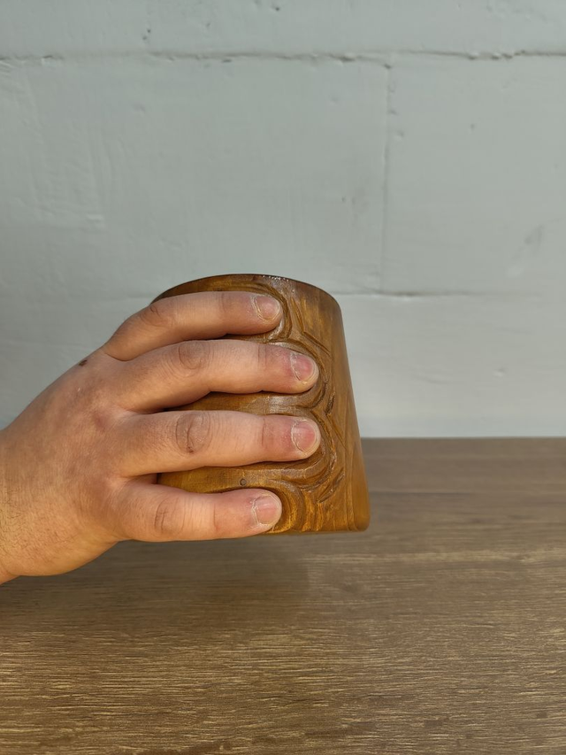 Entdecke den besonderen 0,5 Liter Becher, der durch seine schlichte grifflose Form, dafür aber mit Vertiefungen für die Finger den Eindruck erweckt, dass man sich regelrecht in dem Becher krallt. Jeder Becher wird in sorgfältiger Handarbeit gefertigt, wodurch jeder einzelne ein Unikat mit ganz eigenem Charme wird.