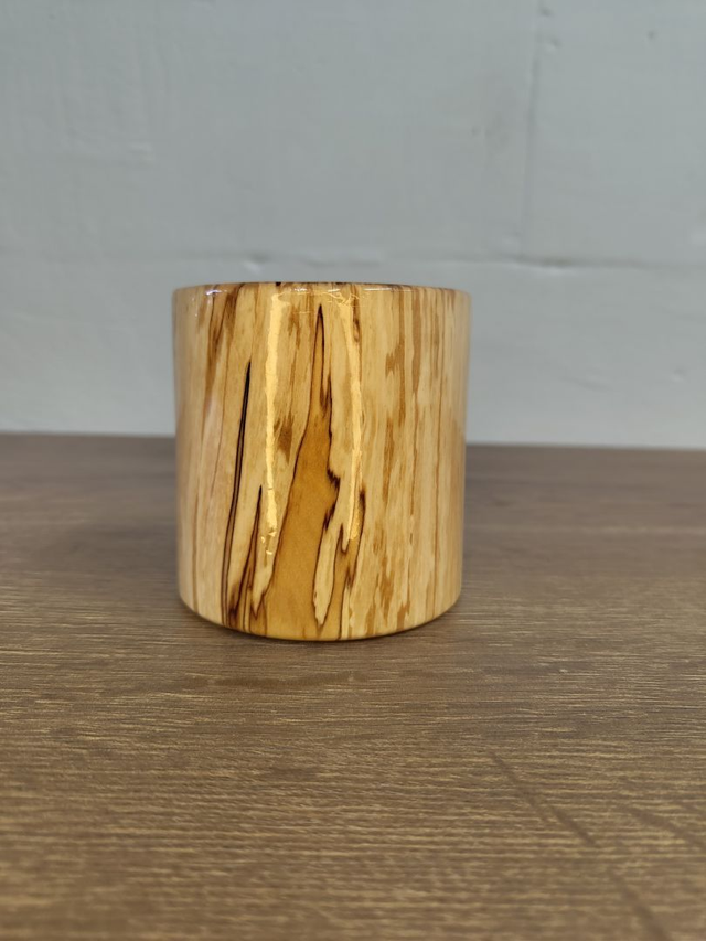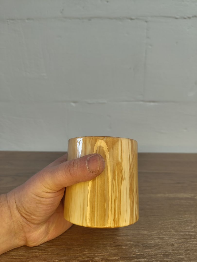 Die schlichte Form rückt das außergewöhnliche Holz bewusst in den Mittelpunkt. In präziser Handarbeit gefertigt und glatt geschliffen, liegt der Becher angenehm in der Hand. Die lebensmitteltaugliche Versiegelung sorgt für ein angenehmes Trinkgefühl und schützt die Oberfläche.