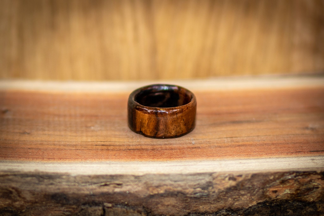Durch sorgfältige Handarbeit wird die natürliche Struktur des Holzes hervorgehoben. Die fein polierte Oberfläche sorgt für ein angenehmes Tragegefühl, während Farbe und Maserung jeden Ring zu einem echten Unikat machen. Der warme Charakter des Holzes liegt leicht und natürlich am Finger und entwickelt mit der Zeit eine individuelle Patina.