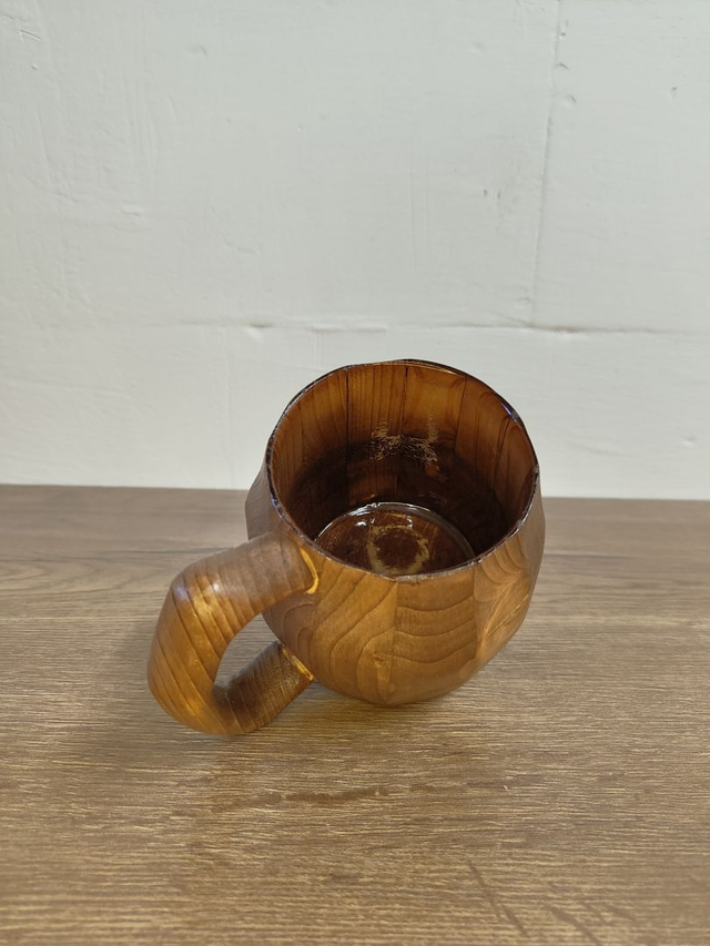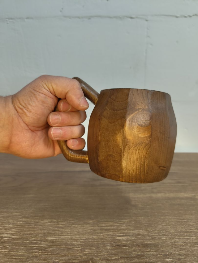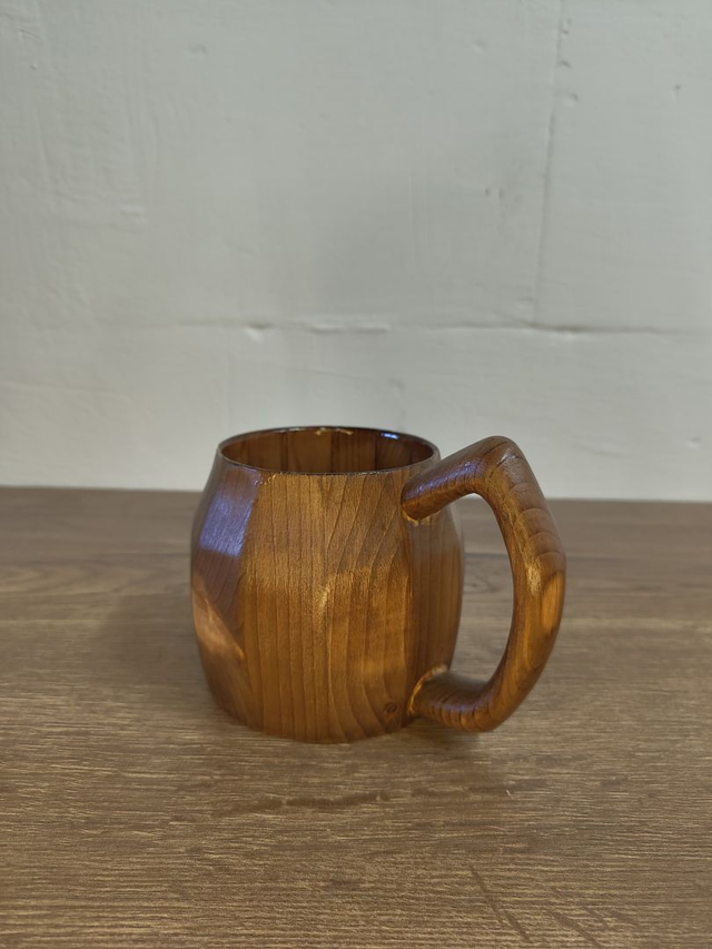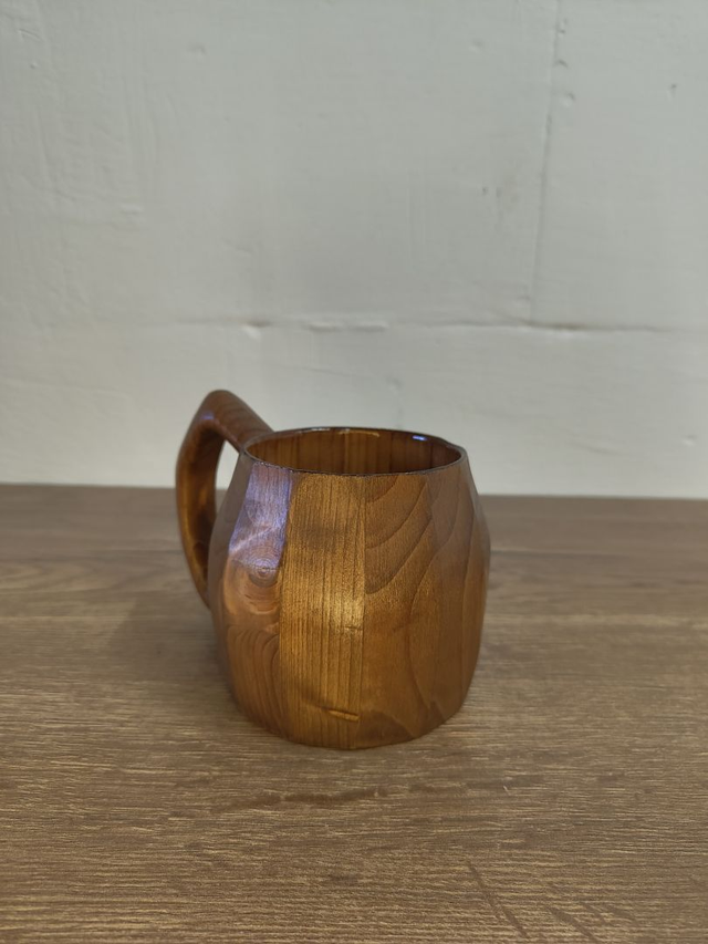 Gefertigt aus massivem Holz und sorgfältig von Hand gedrechselt, bringt dieser Becher die warme Holzfarbe und die lebendige Maserung besonders schön zur Geltung. Der ergonomisch geformte Henkel liegt angenehm in der Hand und macht den Becher ideal für den täglichen Gebrauch.