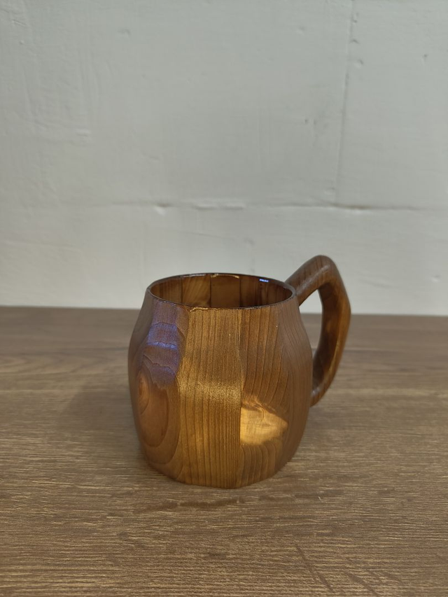 Der Holzbecher „Trinkholz“ vereint schlichte Eleganz mit natürlicher Handwerkskunst. Seine sanft gerundete Form und der harmonisch angesetzte Henkel sorgen für eine ausgewogene Optik und ein angenehmes Trinkerlebnis.