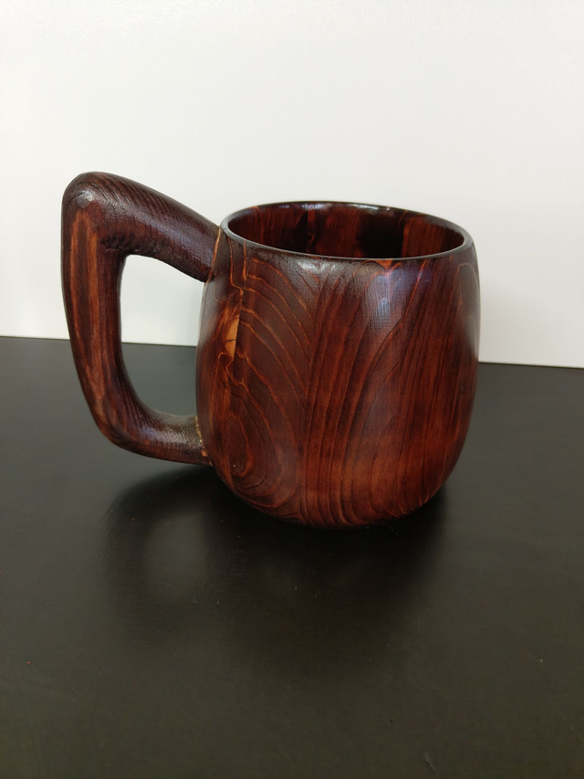 Die Oberfläche ist fein geschliffen, veredelt und mit Lebensmittel echtem Lack behandelt. Ob als Alltagsbecher, rustikales Highlight, besonderes Geschenk oder Sammlerstück – dieser Holzbecher vereint Funktionalität und zeitlose Ästhetik.