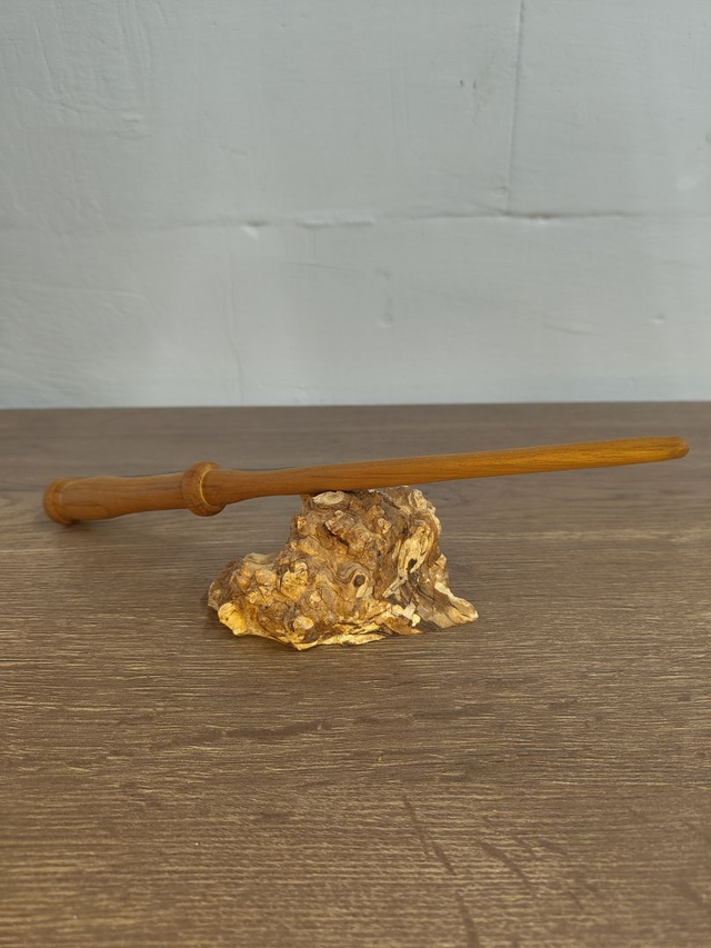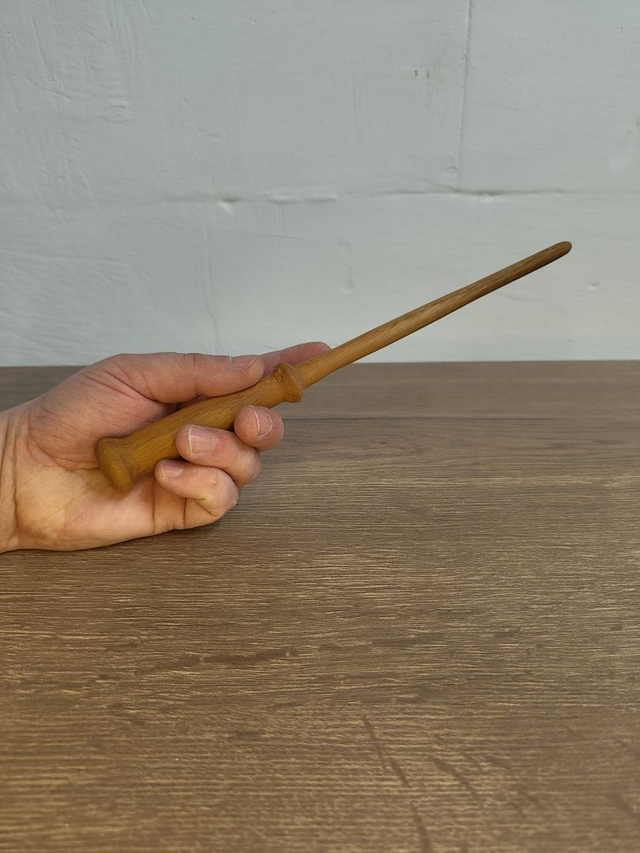 Gefertigt aus Teakholz, besitzt dieser Zauberstab eine natürliche Wärme und Beständigkeit. Die geölte Oberfläche schützt das Holz, lässt die feine Maserung sichtbar und verleiht dem Stab eine angenehme, lebendige Haptik. Er wirkt zurückhaltend, aber niemals gewöhnlich – genau wie ein Lehrling, dessen wahres Potenzial noch verborgen liegt.